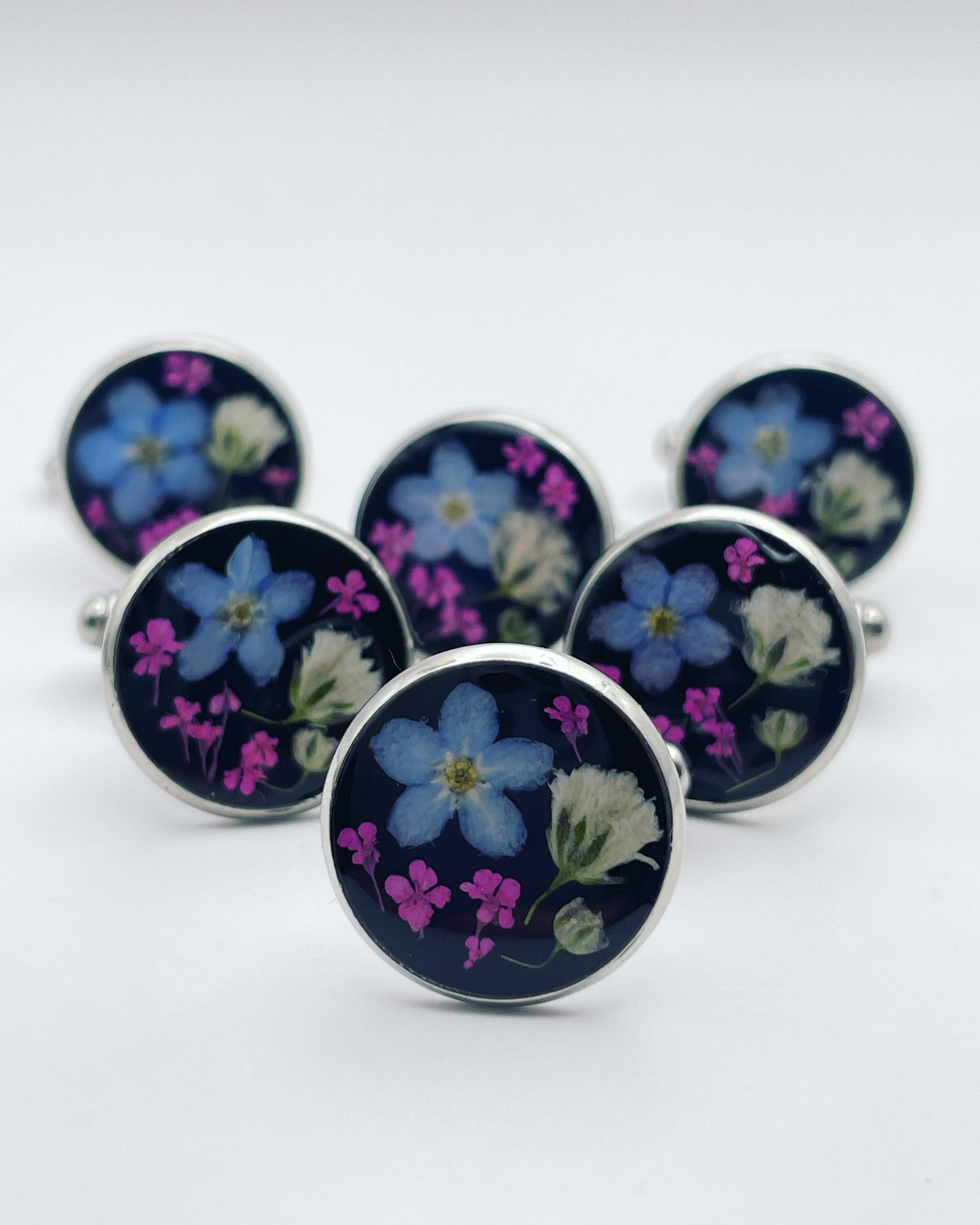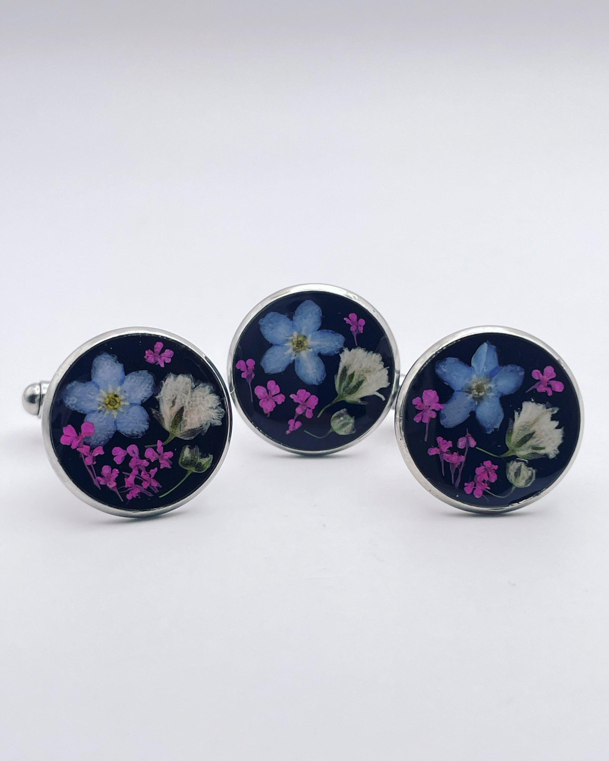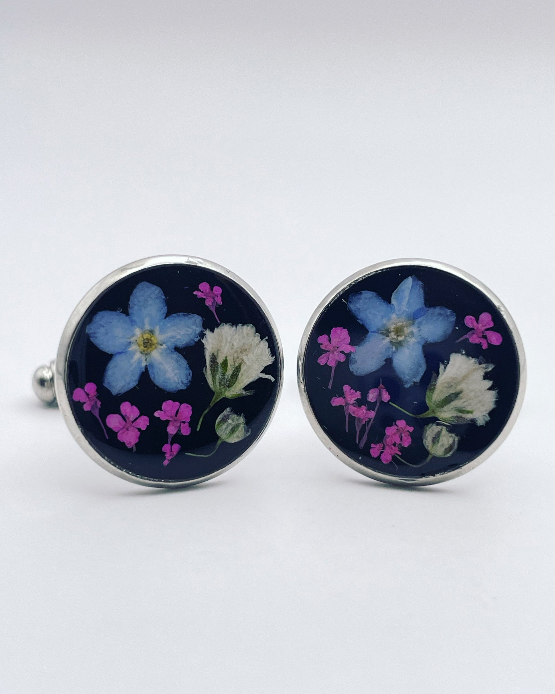 Cufflinks with forget-me-not and baby's breath in 16mm