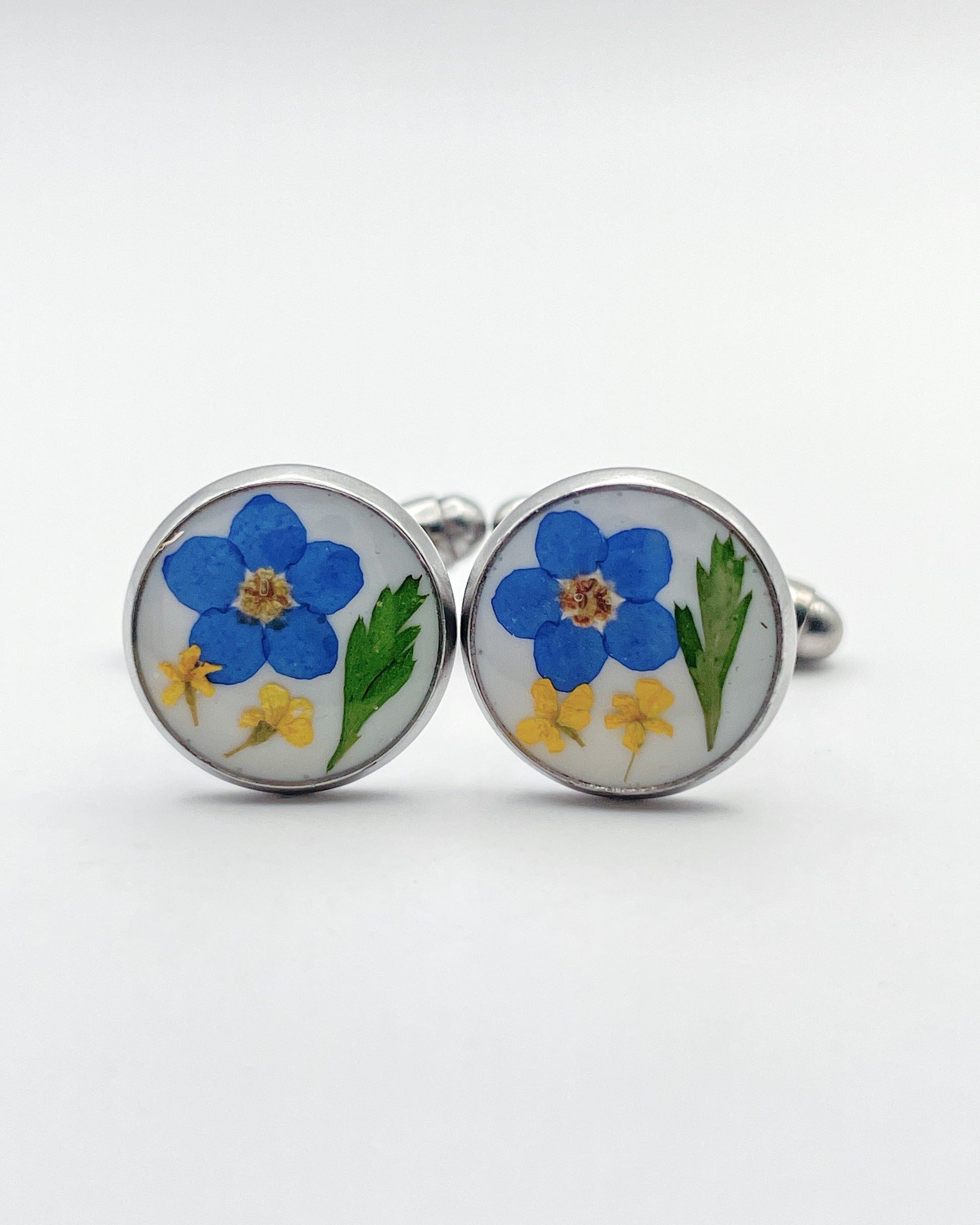 Cufflinks with real forgetmenot in gold or silver in 12mm