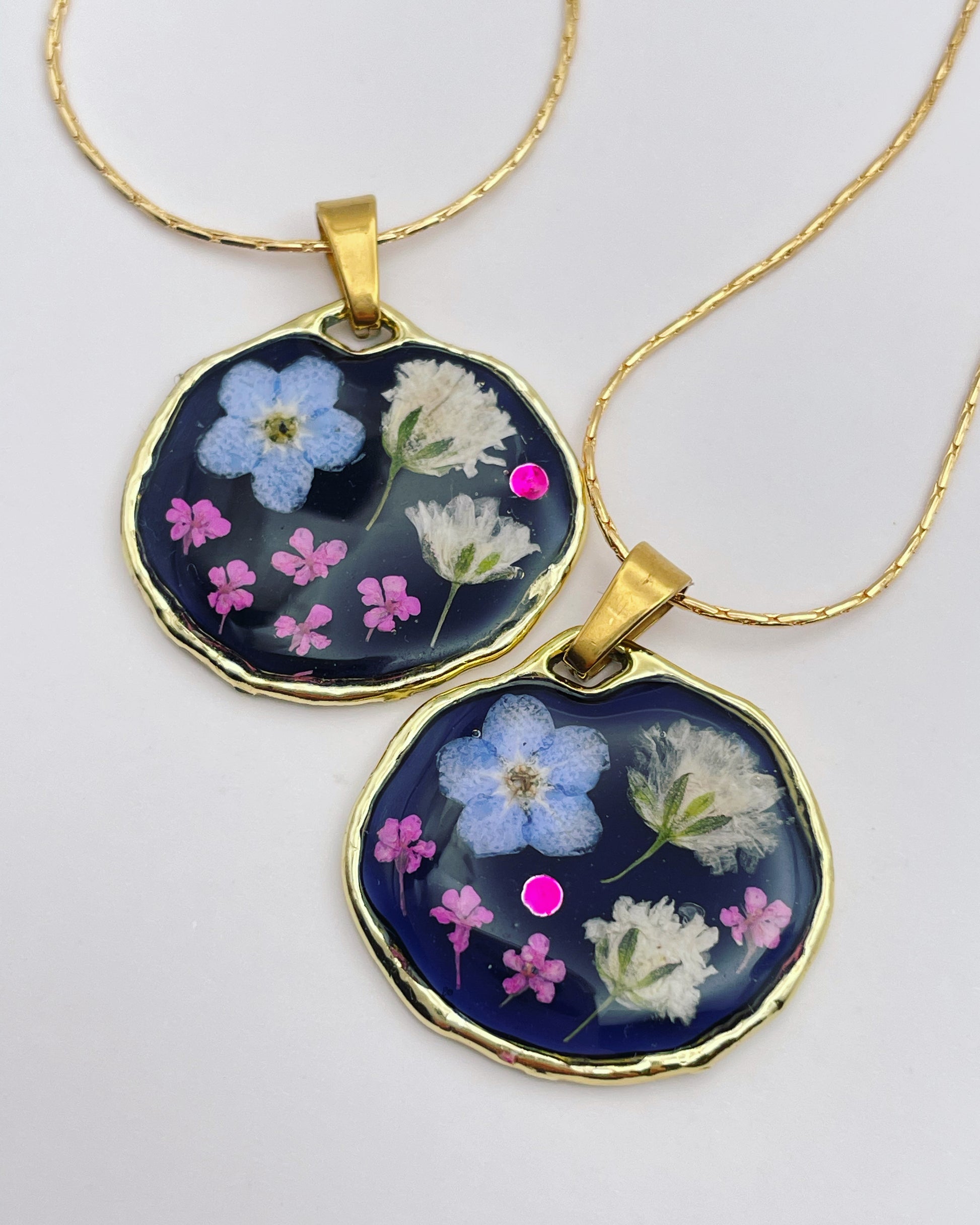 Bespoke customisable pendant necklace with real flowers