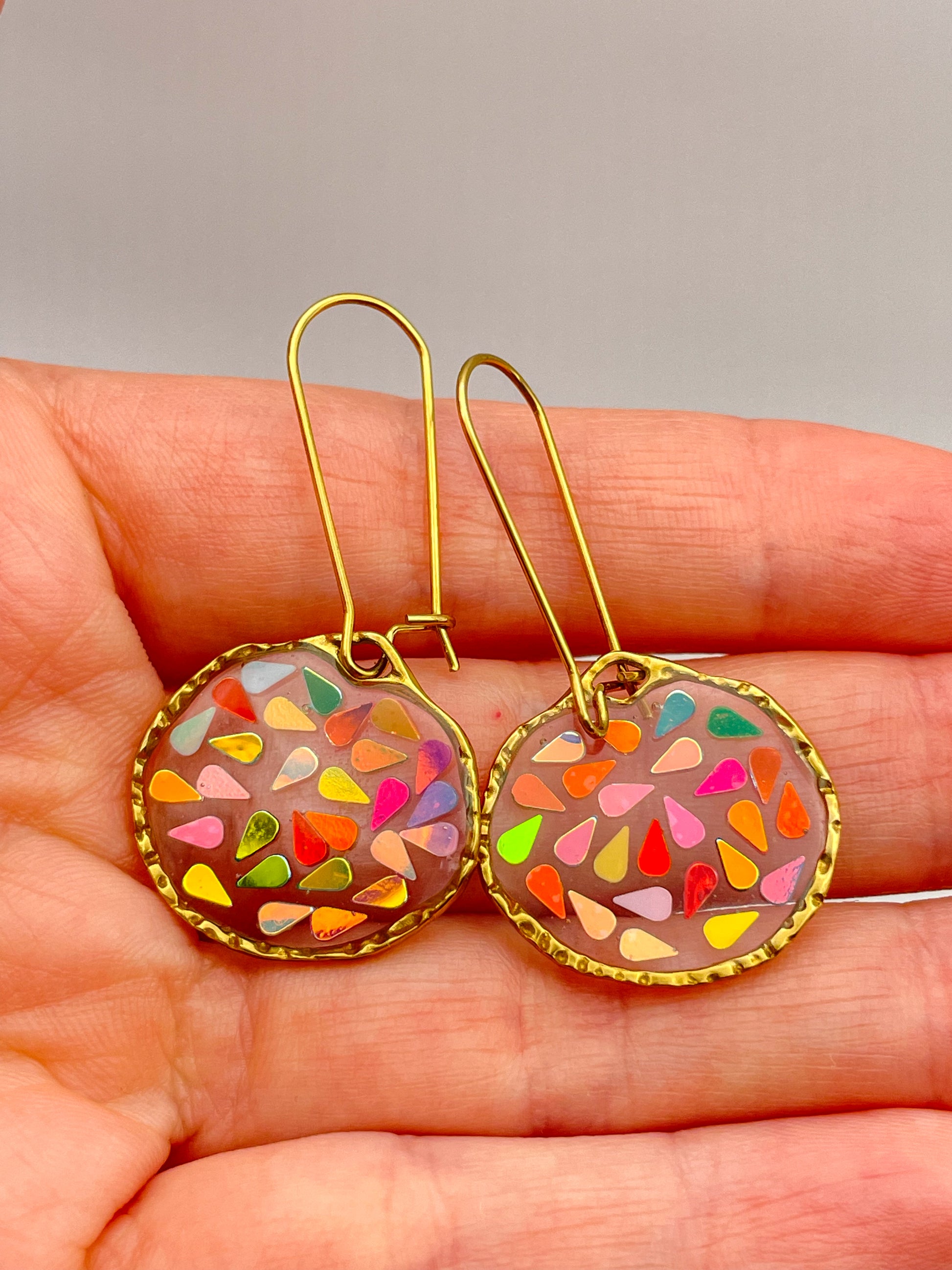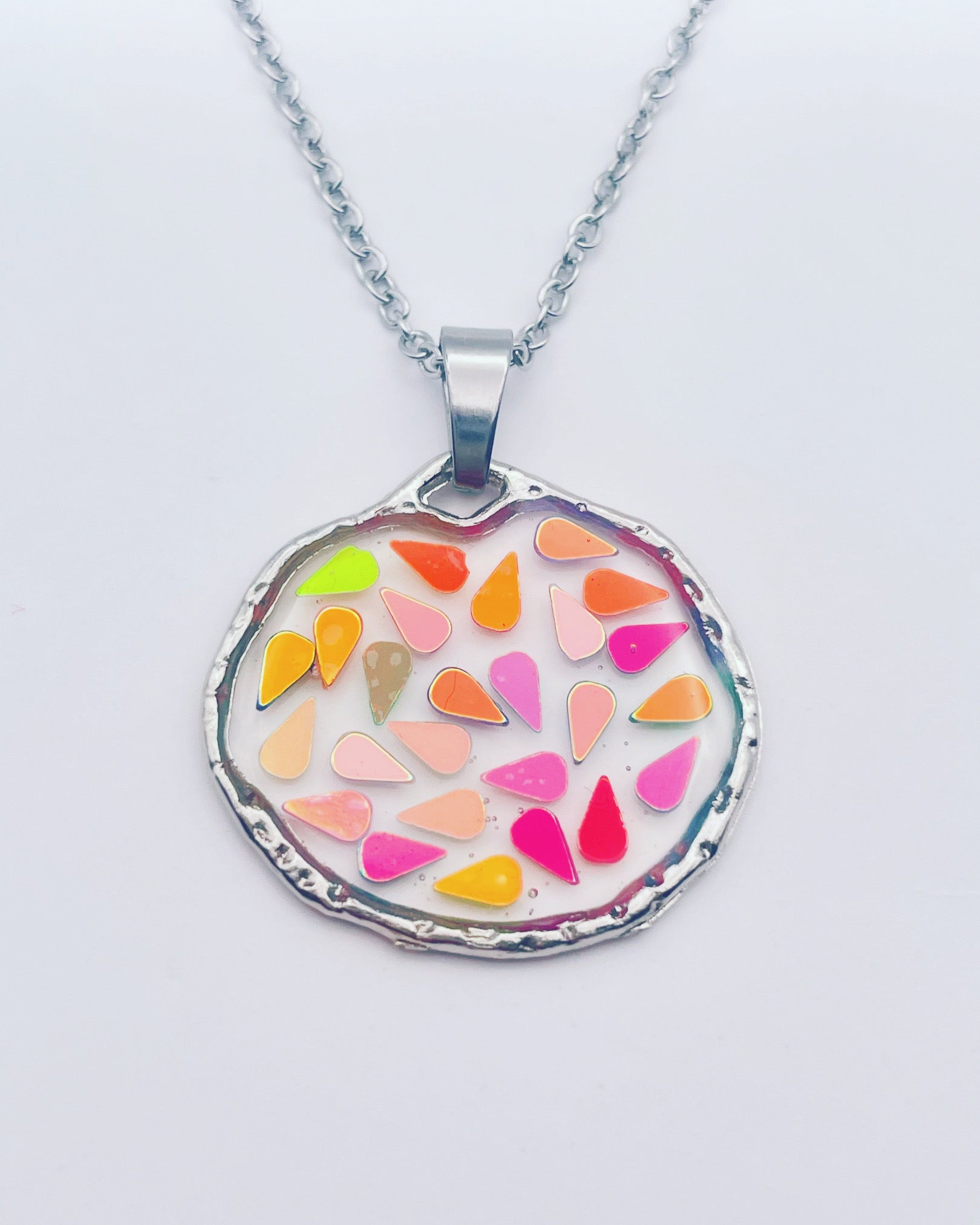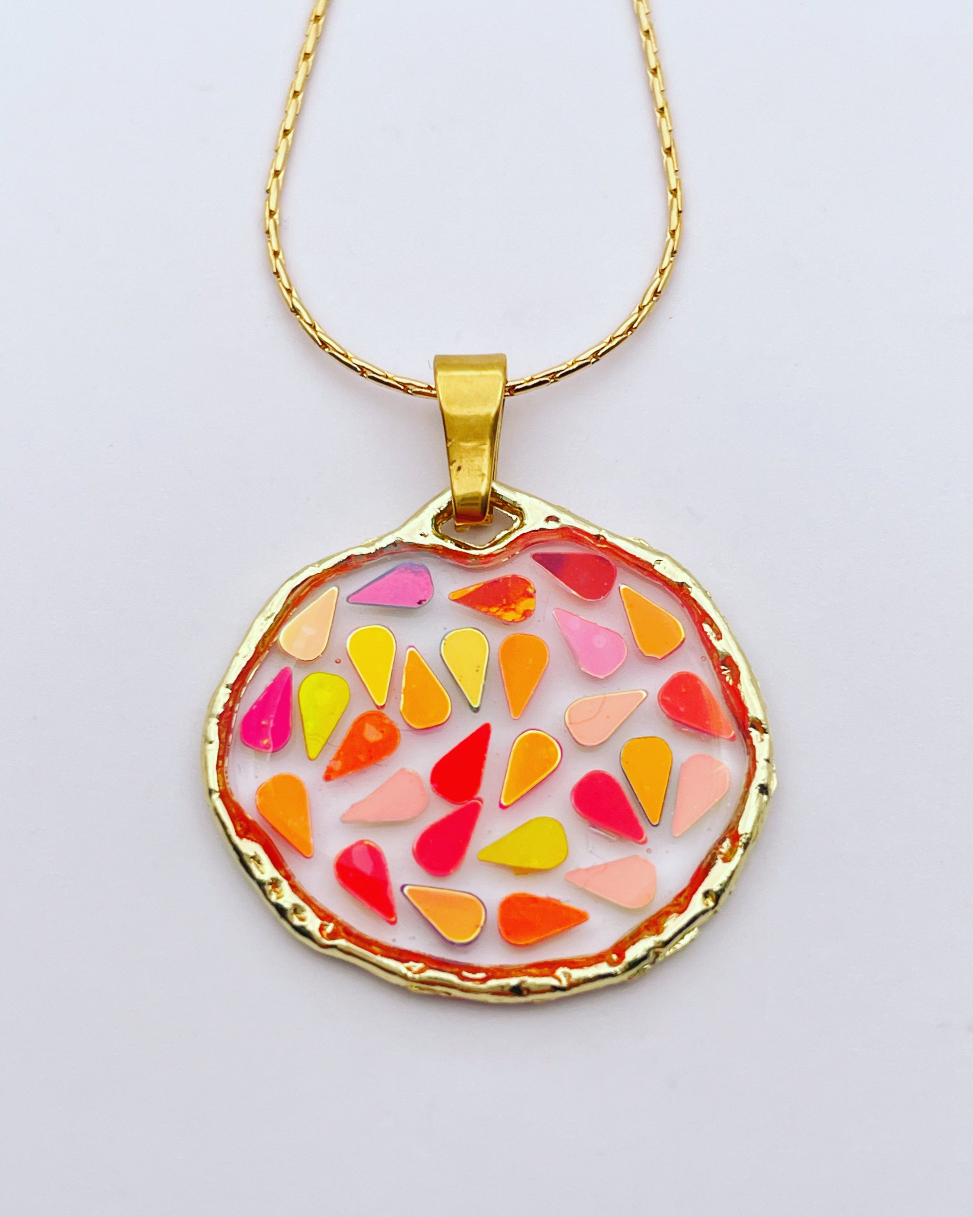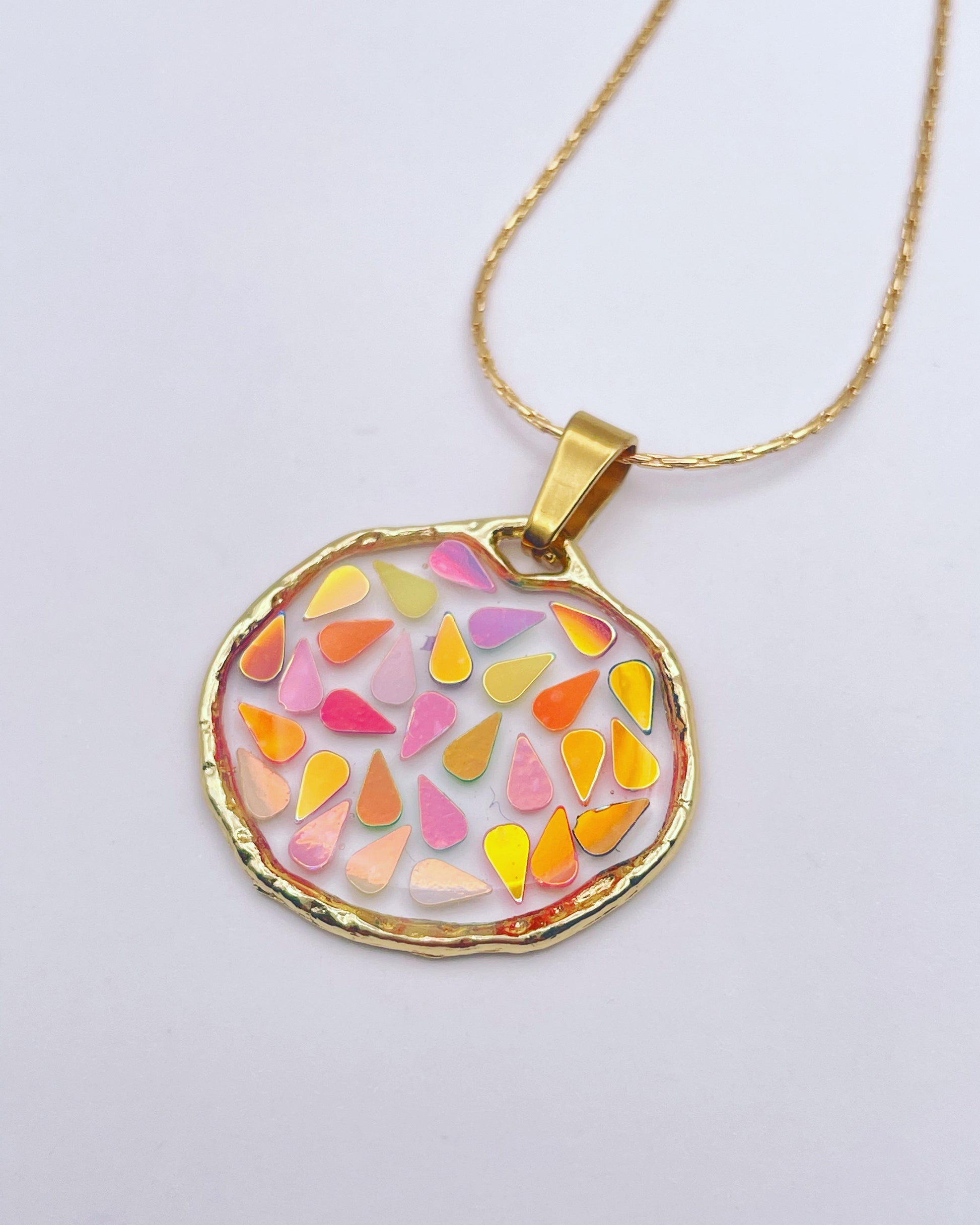 Sparkly pendant necklace handmade with tiny colourful sequins in resin. My inspiration for this collection is Disco balls! The tiny iridescent sequins change colour and shine in the light for a very refined and festive look. Each piece is lovingly handcrafted by me at my workshop in London UK.